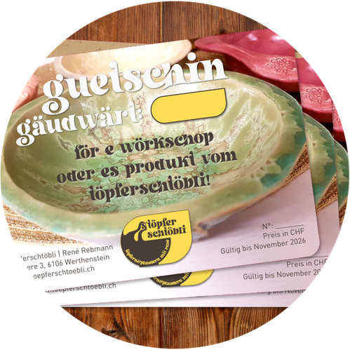 Immer wieder ein schönes Geschenk! Wenn zum Beispiel s'Grosi oder de'Grossvati mit dem Enkel zum Töpfern kommen, ist das stets ein unvergessliches Erlebnis!